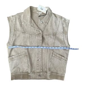 NWT Elan Joy Vest Tan Wash Button Down Denim with Pockets Sz Med