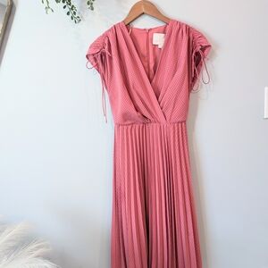 Gal Meets Glam Pink Pleated Wrap Midi Dress