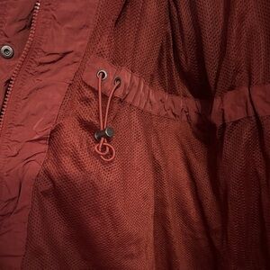 Casual Rust colored hooded jacket. Adjustable waist. Lightweight