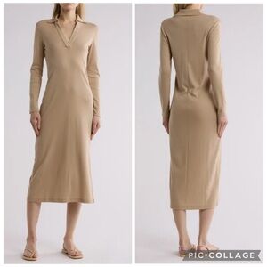 Vince Long Sleeve Polo Midi Dress Fauna Beige L