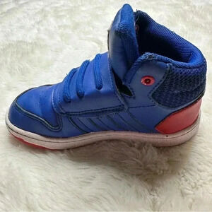 Size 10 Adidas Hoops Spider-Man sneakers.