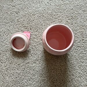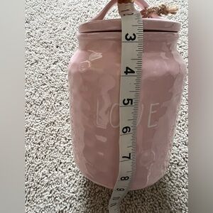 Delightful Valentine canister in soft pink. Features 'LOVE' and heart design, perfect for adding charm to any space.