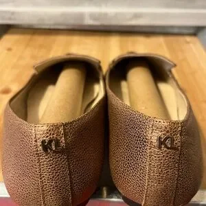 Chic metallic brown Karl lager field Destine loafers. Sleek elegant design with pointed toe. Ideal for versatile wear.