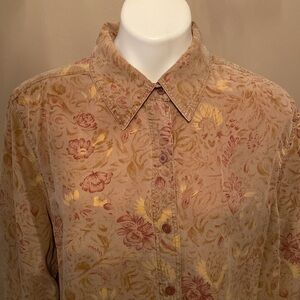 Kate Hill Tan Floral Buttoned Down Shirt Size 2X
