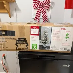 Brighten your home with the Holiday Time Pre-Lit Green Fir Tree. Featuring lush green branches with white accents, this tree adds a festive touch to any space. Easy to set up and perfect for holiday celebrations. Ceramic base. Price reflects upgraded shipping costs.
