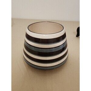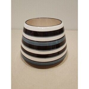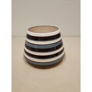 Home Interiors Brown Blue Striped Candle Capper Jar Shade Topper Homco Modern.