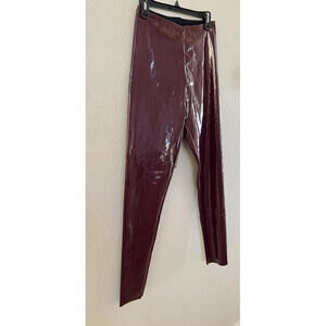 New Commando Control Top Faux Patent Leather Leggings In Burgundy Sz L Retail$98