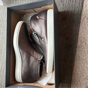 Step out in style with these sleek brown leather ankle boots. Perfect for any occasion, these boots offer both comfort and elegance. NWT