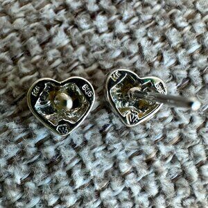 These 14K White Gold Diamond Accent Heart Stud Earrings feature a heart design with a diamond accent. Earring backs are NOT original and NOT 14K gold. Preowned, but still in great condition. Purchased from Fortunoff in the 2000s.