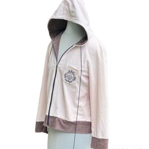 Louis Feraud Pink Brown Hoodie Double Zipper Long Sleeves Great Condition