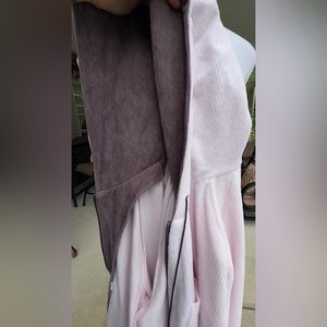 Preowned in great condition. Strap that holds the pocket inside the jackt on one side came off as shown in the picture. Inside the hood is brown. Outside is pink. Very pretty jacket.