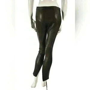 MUUBAA Black Lambskin Leather Cropped Side Zip Moto Pants 4US