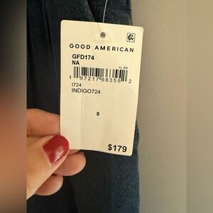 Good American 90s Pleated Trouser Jeans Woman’s SZ 8 Baggy Wide Leg High Rise