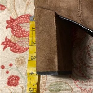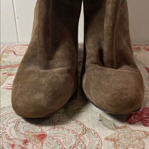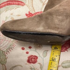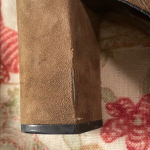 They have been loved with visual wear. See all pictures. Lots of life left. Chic brown suede boots with a sleek design. Perfect for elevating any outfit.