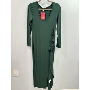 NEW Verdusa Green Long Sleeve Maxi Going Out Dress Ruched Side Slit Bodycon L