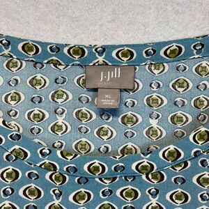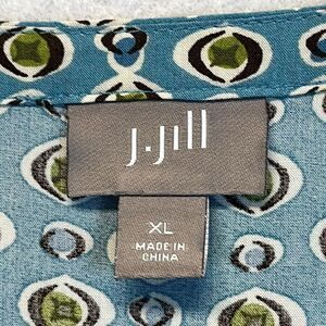 J JILL Top Women's XL Blue Green Short Sleeve Circles Geometric Print Scoop Neck