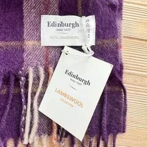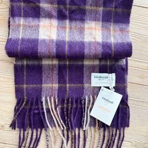 Edinburgh 100% Lambswool Tartan Scarf – Purple & Grey Plaid | NWT | Scotland Her
