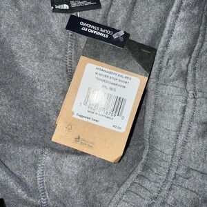 Hang tag details: Style code NF0A4AAGDYY-XXL-REG; model name M NEVER STOP SHORT; color code TNFMEDIUMGRYHTR; UPC: 190519816709; suggested retail price $40.00.
