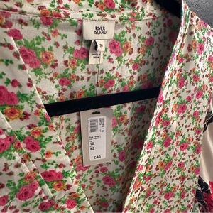 Mini dress by River Island Love at first scroll All-over print V-neck Long sleeves Tie back Regular fit
