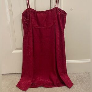 Red mini dress with adjustable straps. Zipper on the side. Flattering and comfortable dress.