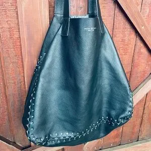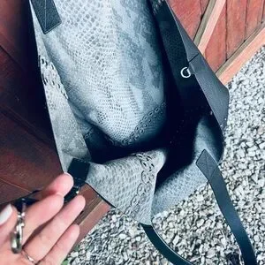 Absolutely gorgeous extra large reversible tote with soft, supple leather! Perfect for any occasion- work, office, travel, vacation. Easily turns to other side where there is suede snakeskin/python print. Interlocking grommets are a beautiful unique detail. Excellent condition!! Still smells like leather!! 22” is laying flat at widest. Can be clipped to change shape and size.