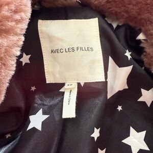 Avec Les Filles Oversized Collar Faux Fur Midi Coat in a rose or blush pink color.