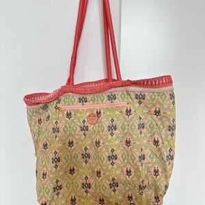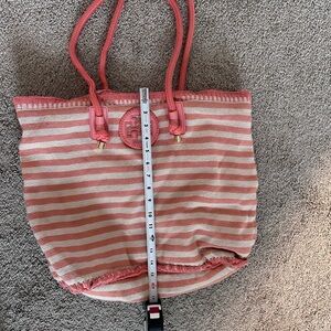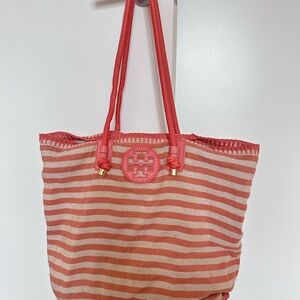 Tory Burch Coral and Cream Striped beach bag