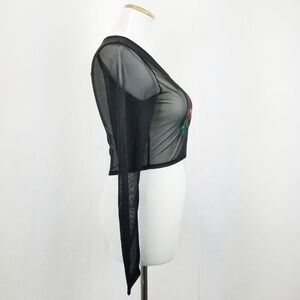 Glam Floral Embroidered Sheer Long Sleeve Crop Top