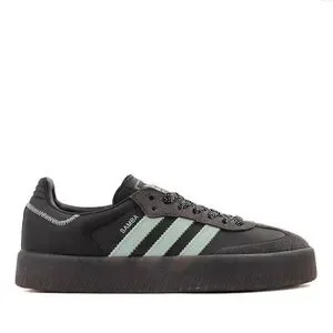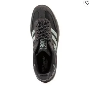 Classic Adidas Samba with black upper and gray stripes. Sleek design for everyday wear.