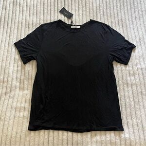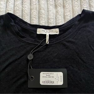 Rag & Bone black linen t-shirt. Called the Michal Linen Tee in Black. Super soft, lightweight, factory-made split edges around the arm holes and the hemline. New with tag.