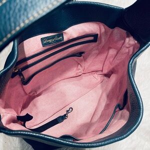 Signature double-sided Dooney & Bourke logo lock closure.