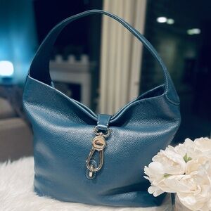 Dooney & Bourke Pebbled Leather Logo Lock Teal Blue Shoulder Bag