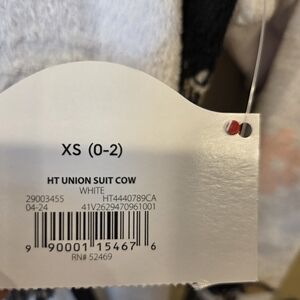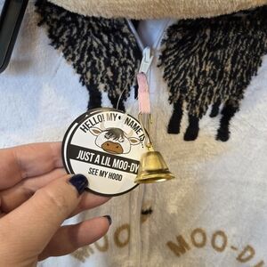 Get cozy and cute with this brand new with tags (NWT) “Just a Lil Moo-dy” Highland Cow Union Suit One Piece Pajamas in size XS. Made from ultra-soft, plush fleece, this adorable one piece features a fun all-over Highland cow print. The attached hood includes 3D cow ears and horns, plus a removable gold bell charm on a pink ribbon for extra charm. A tan “MOO-DY” detail adds a playful touch. Designed with a full front zipper closure, it’s easy to wear and perfect for lounging, sleepwear, themed pajama days, or even as a costume. Feet are open. Makes a fantastic gift for the cow lover in your life.