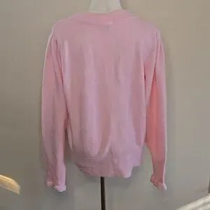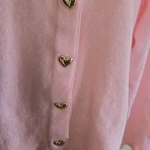 Crown & Ivy Pink Cardigan Gold Heart Buttons Coquette Feminine Balletcore Large