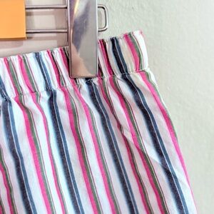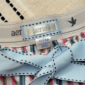 Comfortable Aerie pajama shorts. Features pink, blue, and white stripes. Cute bow detail on the front. Perfect for lounging.