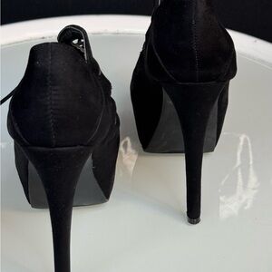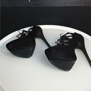 Elevate your look with these chic black lace-up heels. Perfect for adding a touch of elegance to any outfit.