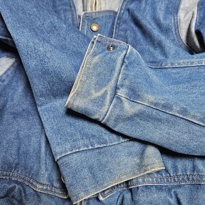 Vintage 80's 90's Denim Patchwork Distressed Bomber Jacket Large