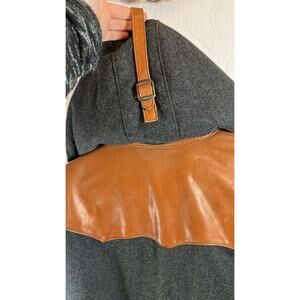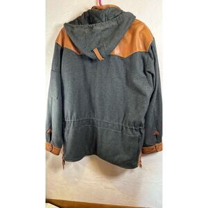 Vintage 90s LEFA Wool Leather Shooting Hunter Jacket Lace Sides Front Gray XL