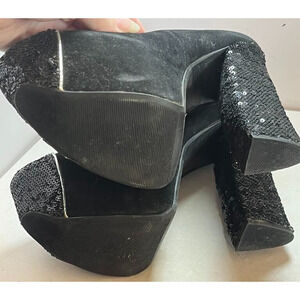 F R H ~ Women's Size 7.5 ~ Black Suede ~ SEQUIN ~ 5.5" Hi Heel ~ Platform Shoes