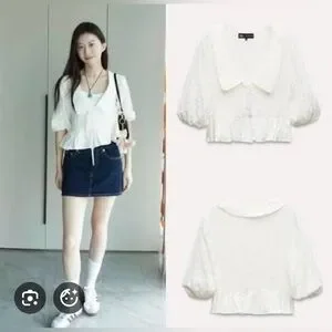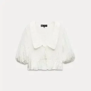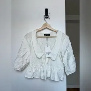 NWT ZARA Voluminous Peter Pan Collar Jacquard Shirt Blouse XS
