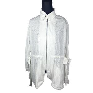 Adam Lippes Roderie-Anglaise Zip-Up Jacket Anorak In Cotton Eyelet White…