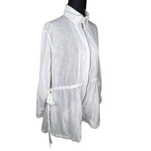 Solid White Cotton Eyelit Anorak Jacket