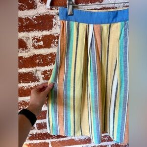 Anthropologie Odille Striped linen blend multi color knee length skirt, with pockets