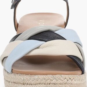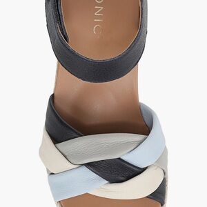 Vionic Saratoga Espadrille Wedge Sandals Wide Size 9 Blue Leather Comfort