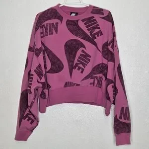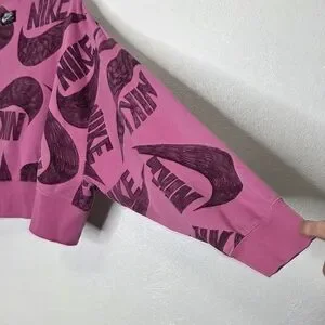 Bold pink sweater with dynamic Nike graphics. Stylish and comfortable.