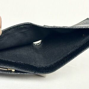 Made in Italy, this classic Salvatore Ferragamo pebbled leather bifold wallet is in good condition with a callout in the kiss lock coin pouch. Callout: The interior has peeled a bit so the texture is a little rubbery. This does not affect functionality. Other than that, there is minimal corner wear noted in photos.