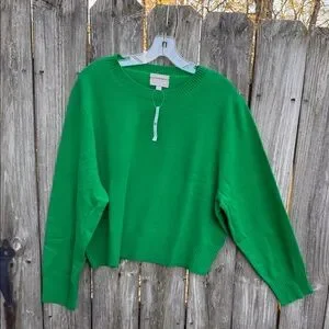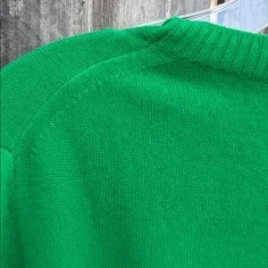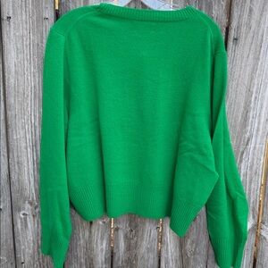 Bright green sweater with a classic crew neck. Perfect for layering or wearing alone.