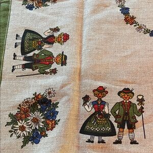 Vintage WEST GERMAN Folk Art Tablecloth with Green Border