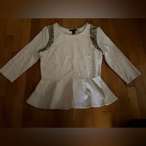 Forever 21 Women’s Large Cream and Gold Sequins Knit Top NWT