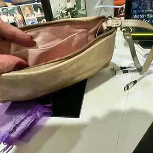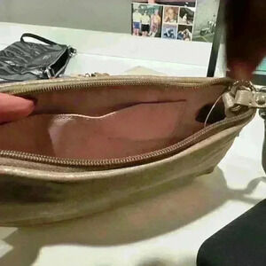 Coach Wristlet Handbag Leather Gold Metallic Shimmer Silver Hardware Rectangle